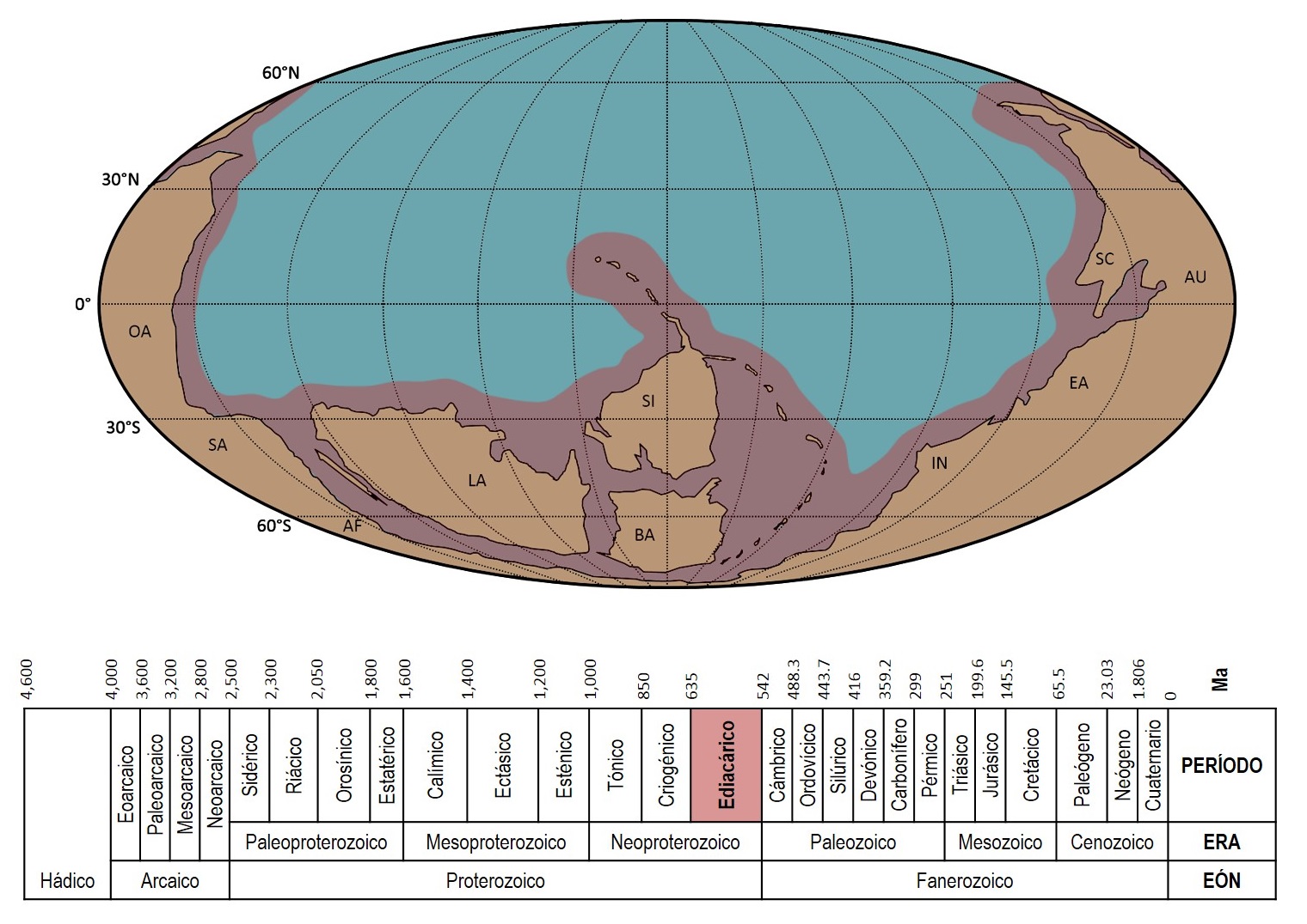 Shen, Y., T. Zhang y P.F. Hoffman. 2008. On the coevolution of Ediacaran oceans and animals. Proceedings of the National Academy of Sciences, 105(21): 7376-7381.