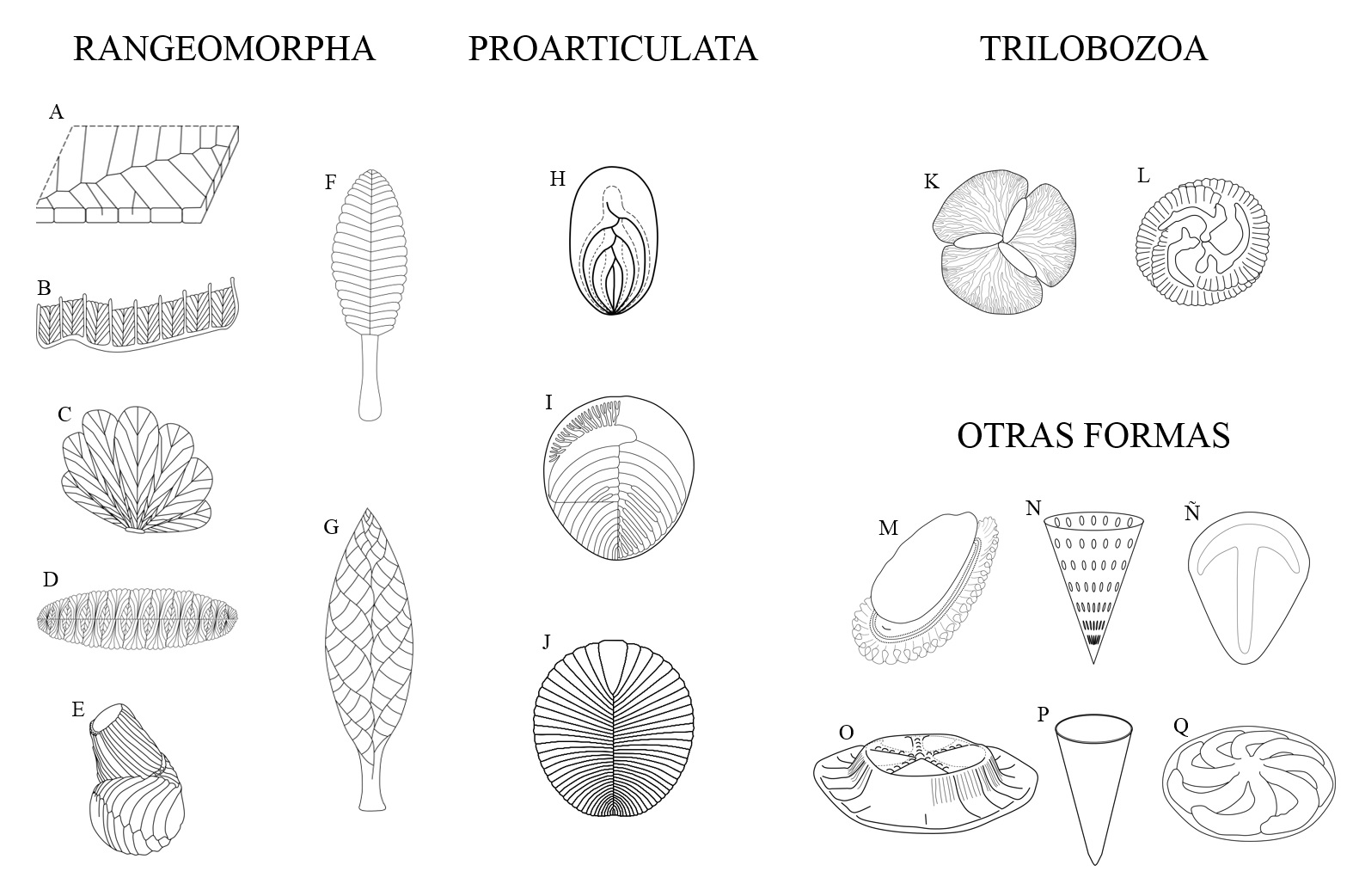 Seilacher, A., D. Grazhdankin, y A. Legouta. 2003. Ediacaran biota: The dawn of animal life in the shadow of giant protists. Paleontological Research, 7(1): 43-54.