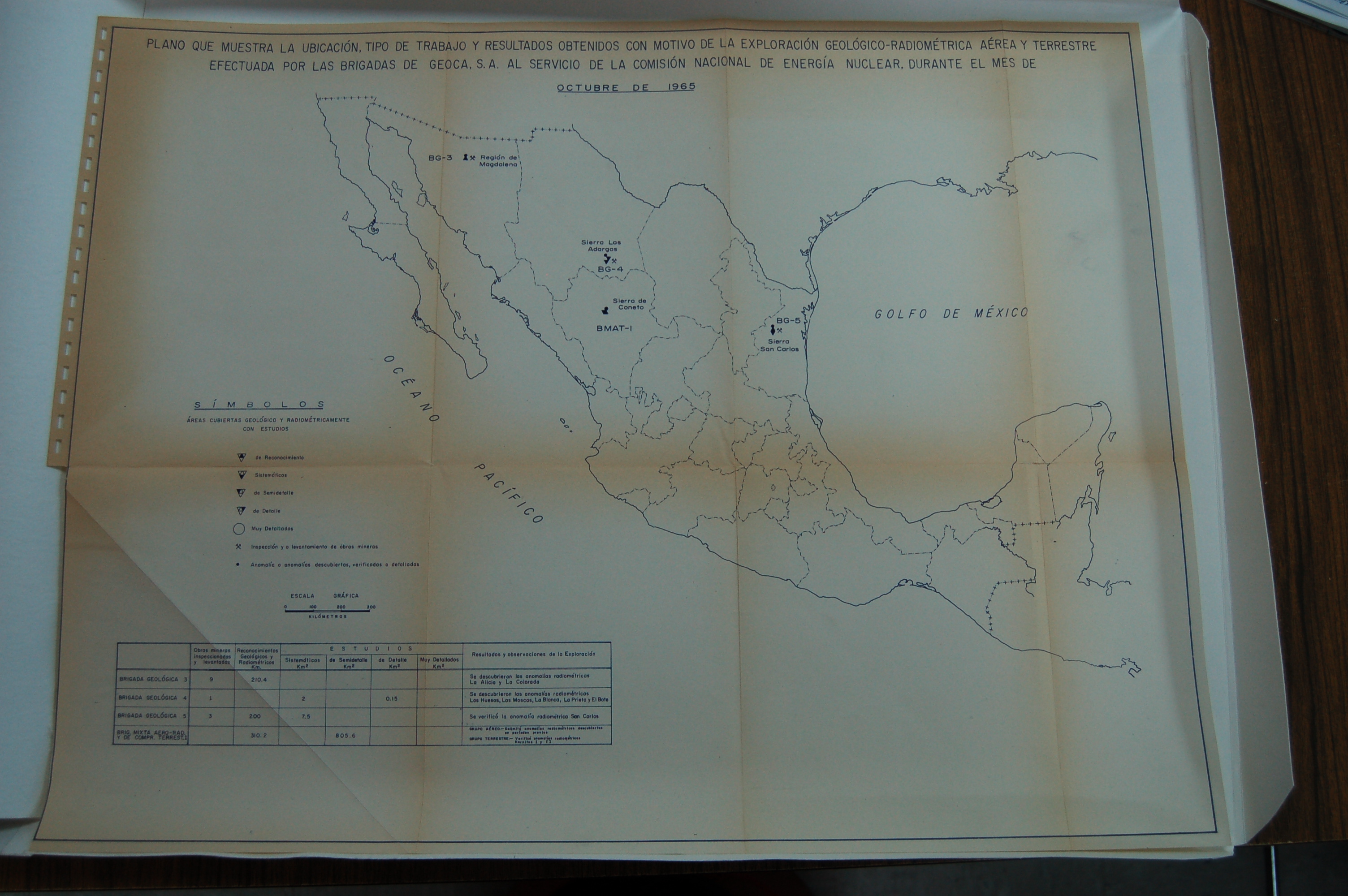 Los resultados de estas actividades se reflejaron, entre otros productos, en el mapeo, realizado a partir de los levantamientos topográficos con la utilización de los instrumentos necesarios para explorar las regiones detectadas. Las labores de geógrafos, ingenieros, entre otros, en los pobibles yacimientos se desarroolaron a lo largo de la década de los sesenta y se prolongaron hasta principios de los setenta.